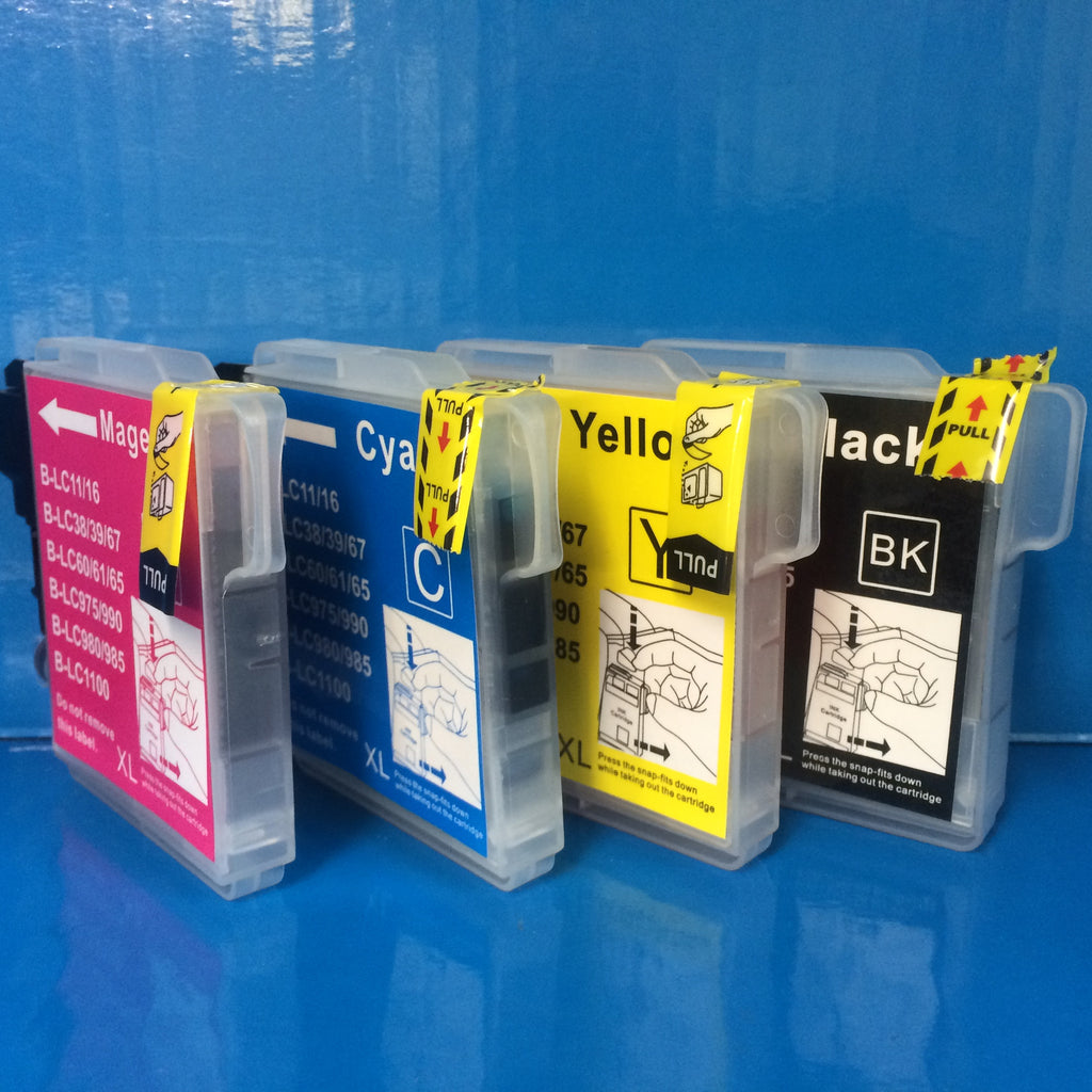 Compatible Ink Cartridges for use with DCP-145C, DCP-163C, DCP-165C, DCP-195C, DCP-197C, DCP-385C, DCP-535CN, DCP-585CW, DCP-6690CN, DCP-6690CW, MFC-250C, MFC-290C, MFC-490CN, MFC-490CW, MFC-670CD, MFC-670CDW, MFC-790CW, MFC-930CDN, MFC-930CDWN, MFC-990CW, MFC-5490CN, MFC-5890CN, MFC-5895CW, MFC-6490CN, MFC-6490CW, MFC-6890CDW Printers. LC980BK/LC985BK/LC1100BK BLACK INK CARTRIDGES, LC980C/LC985C/LC1100C CYAN INK CARTRIDGES, LC980M/LC985M/LC1100M MAGENTA INK CARTRIDGES, LC980Y/LC985Y/LC1100Y YELLOW INK CARTRIDGES.